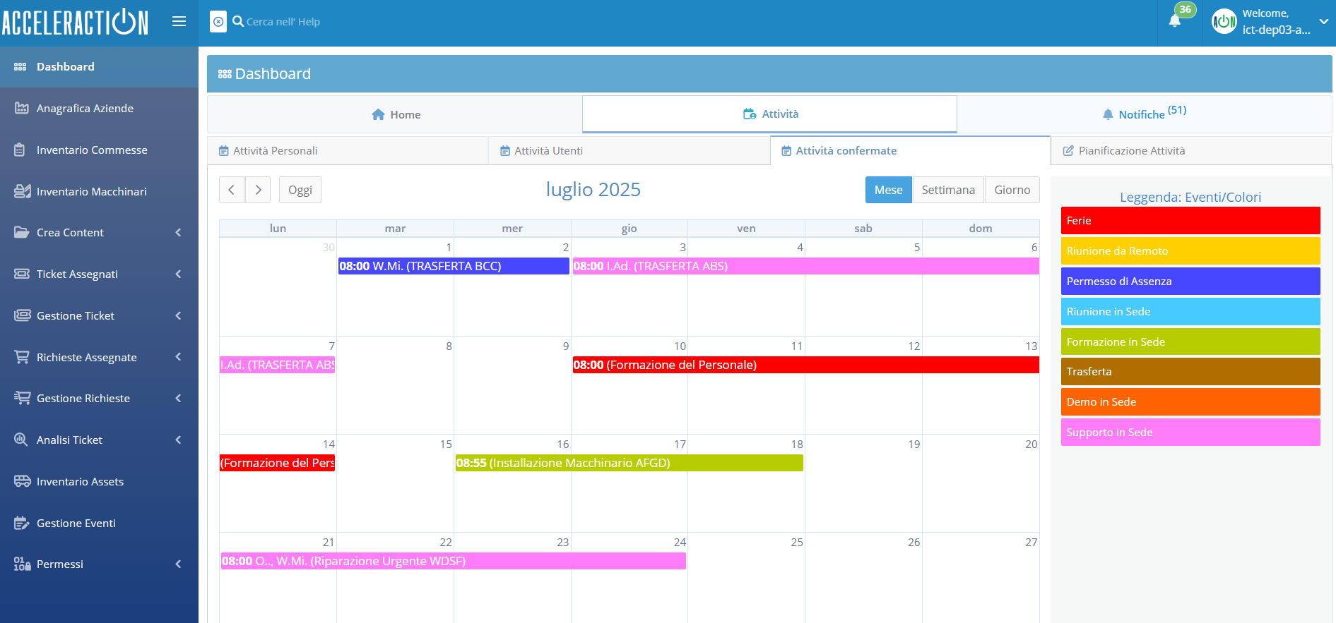 - Pianificazione centralizzata di attività, trasferte e formazione